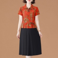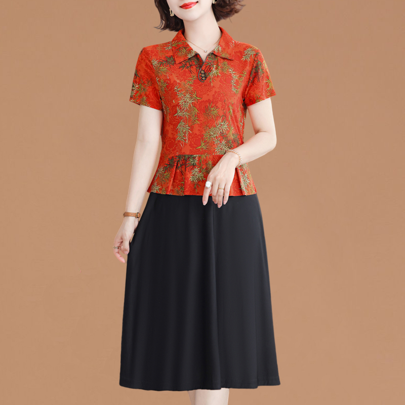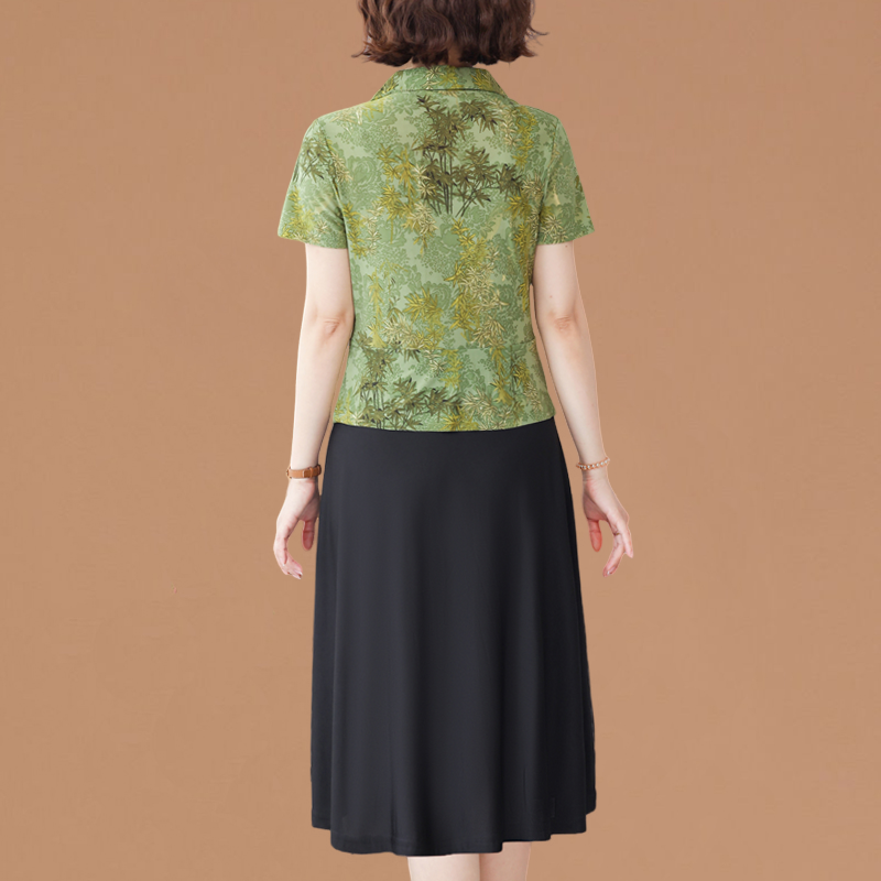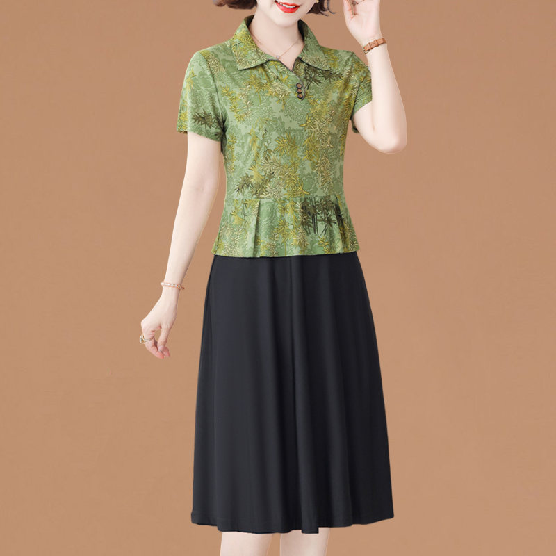 碎花拼接連衣裙 寬鬆版型遮肚顯瘦 桔紅活潑 翠綠清新 綠鳳尾雅致 穿上瞬間變洋氣